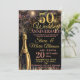 A stylish 50th Wedding Anniversary Party Invitation featuring a bottle of bubbly in gold, fireworks with gold and pink text all on a black background .A gorgeous invitation to send to family and friends to celebrate the special event. All text can be amended as needed - more text can be added on the back or delete the text box if need needed.