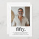 ¡Marque su cumpleaños con sofisticación usando esta moderna plantilla de Invitación de cumpleaños número 50 para hombres! Con un espacio de personalizable para tu propia foto y la palabra audaz "cincuenta" este diseño elegante es perfecto para celebrar con estilo. Fácil de personalizar, esta invitación le permite crear una manera única y memorable de anunciar su próximo fiesta. Fijar el tono para una celebración refinada e inolvidable con este diseño contemporáneo.