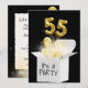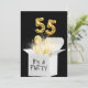 Globos de oro con destellos y cintas en una caja blanca sobre fondo negro para la fiesta de cumpleaños número 55. Se puede editar el texto de la casilla. Se puede cambiar el color de fondo.