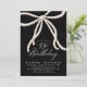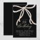 Invitación 55th Birthday Party Black White Coquette Pearl Bow