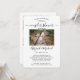 Ya sea que amigos y familiares estén practicando el distanciamiento social o que simplemente vivan lejos, conéctense con ellos en línea con la elegante ducha de novia de una pareja virtual. Esta moderna y elegante invitación permite compartir 5 fotos de compromiso así como la información necesaria para conectar a larga distancia por correo y por videoconferencia en internet. Todo el texto es sencillo de personalizar. (IMAGEN PLACEMENT TIP: Una manera fácil de centrar una foto exactamente como quieres es recortarla antes de subirla al sitio web de Zazzle.) El diseño incluye cinco imágenes de su elección, caligrafía de escritura manuscrita de moda y tipografía minimalista moderna. Esta plantilla es fácil de personalizar para un fiesta de lencería virtual, ducha de bebé u otro evento. El diseño moderno complementa la temática boda sencilla y elegante. El espacio adicional proporcionado para un mensaje personal es perfecto si se trata de un fiesta reprogramado debido a una cancelación o postergación. ¡Felicitaciones a la novia y al novio!