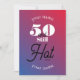 Un diseño sencillo, minimalista, divertido y moderno con colores que van del azul al rojo. Organizar el 50 aniversario de uno de tus seres queridos. Este modelo es totalmente personalizable.
