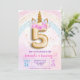 Invitación 5th unicorn party invite, Editable 5th birthday in