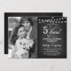 Invitación de 5to Aniversario de Boda con Foto. Diseño elegante en blanco y negro. Características de patrón de pizarra, fuente de escritura y luces de hadas. ¡Salud por 5 años! Puede ser personalizado para cualquier año. Envíame un mensaje si necesitas más personalización.