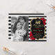 Diseño elegante en rojo y negro con falso dorado brillante. Cuenta con rayas blancas y negras, letra script, rosas rojas y confeti. ¡Se puede personalizar para cualquier año! Envíame un mensaje si necesitas más personalización.