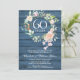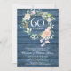 invitación de aniversario de bodas de 60 o 75 años con una delicada guirnalda floral de acuarela sobre un fondo de paneles de madera rústica azul. Personalice con la información de su aniversario de diamante o platino. El reverso presenta su foto de boda, lo que hace que sea un bonito recuerdo para que sus invitados lo conserven. Diseñado por Thisisnotme©
