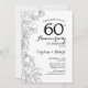 Invitación de fiesta de aniversario de bodas 60 Floral Blanco y Negro. Diseño moderno minimalista con acentos de dibujos de contorno botánico y tipografía en letra script. Tarjeta de invitación elegante perfecta para una celebración con estilo. Puede ser personalizada para cualquier año de matrimonio. Impresiones de invitaciones de Zazzle o plantilla digital descargable instantáneamente.