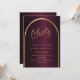 Una elegante invitación de cumpleaños número 60. Un fondo borgoñoso con un arco dorado en la parte delantera.