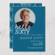 Saluda a los sesenta con esta moderna y elegante invitación a la fiesta de cumpleaños. El sencillo fondo azul océano complementa perfectamente el texto blanco y el detalle de las velas, añadiendo un toque de clase al diseño. El texto informal transmite una sensación de emoción por la próxima celebración. Además, una plantilla de foto de personalizable le permite añadir un toque personal. Esta invitación contemporánea y mínima es perfecta para una fiesta de cumpleaños. Disponible como una descarga digital conveniente, listo para que usted lo personalize y envíe a todos sus seres queridos. ¡Haz tu 60° fabuloso con esta invitación!