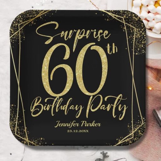 60 Fabulous Black Gold Glitter 60th Birthday PartyDiseñado por H-Art Studio Design