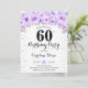 60.ª invitación a la fiesta de cumpleaños. Elegante diseño en una falsa plata purpurina con acento floral. Invitar a la tarjeta con tipo de letra de guión y con contenido. Lílago de lavanda púrpura y blanco. Perfecto para una elegante celebración de los 30 días. Mándame un mensaje si necesitas edad personalizado.