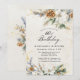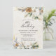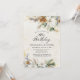 Las elegantes flores blancas están enclavadas en la vegetación de los pinos de invierno y en los pinares. El diseño floral está enmarcado por un suave lavabo acuarela de marfil infundido con flecos de oro suave. Perfecto para Navidades o fiesta de cumpleaños.