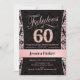 60.ª invitación a la fiesta de cumpleaños en oro negro y rosa. Elegante carta de invitación con oro falso rosa purpurina y diamantes. Presenta el patrón de damasco y el tipo de letra del guión. ¡Fabuloso a los sesenta! El diseño clásico es perfecto para un fiesta elegante. Por favor, envíame un mensaje si necesitas una edad personalizado.