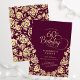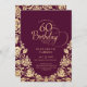 Elegante invitación a la fiesta de cumpleaños número 60 de Borgoña. Diseño elegante con rosas, Relieve metalizado de oro falso y tipo de letra de guión de tipografía. La carta de invitación a la moda es perfecta para una elegante celebración de cumpleaños femenina. Personaliza con tus propios detalles. Se puede personalizar a cualquier edad. Invitaciones Zazzle impresas o una plantilla imprimible digital de descarga instantánea.