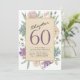 Celebra el estilo del cumpleaños 60 de tu ser querido con esta hermosa invitación a la fiesta con motivos florales. Imprimida con un cartón brillante, esta impresionante invitación incluye flores acuarelas, perfectas para la ocasión especial. Establezca el tono de su evento especial con esta invitación tan atractiva y única. ¡Que comience la celebración! Sofisticada y elegante invitación para cumpleaños de guión. Añade tu mensaje como "¡SHHH es una sorpresa!" o cualquier otro detalle adicional en la parte trasera.