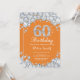 Invitación 60.º Naranja de cumpleaños y diamante plateado