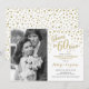 Invitación de Bodas de 60 Aniversario con Foto. Diseño elegante en blanco con fuente de escritura en oro falso y confeti. Envíame un mensaje si necesitas un año personalizado.