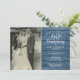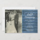 Personalice con su foto de boda favorita y los detalles de su celebración especial del 60 aniversario de boda de diamante en tipografía chic sobre un fondo de paneles de madera azul rústica. El reverso presenta confeti de corazones de amor. Diseñado por Thisisnotme©