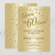 Invitación de Celebración del 60 Aniversario de Boda. Invitación impresa o plantilla digital en hoja de oro falso brillante. Características fuente de escritura y confeti. ¡Salud por 60 Años! Perfecto para una celebración elegante de 60 años de matrimonio.