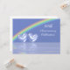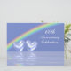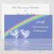 invitación de aniversario de diamante 60 con un arcoíris en un cielo azul claro y dos corazones de diamante brillantes flotando en el agua. Personalice el texto de ejemplo en la parte posterior con su propia información para su evento.