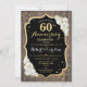 Invitación de Bodas de 60 Aniversario. Tarjeta de invitación elegante rústica con patrón de madera marrón oscuro, con brillo falso dorado y rosas blancas. Invitaciones impresas o plantilla digital para descargar instantáneamente. Perfecta para una celebración de 60 años de matrimonio con estilo.