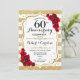 Elegante Invitación de Celebración de Bodas de Diamante. Tarjeta de invitación impresa o plantilla digital en blanco, rojo y dorado falso. Cuenta con rayas, letra script y rosas rojas. Se puede personalizar para cualquier año de casados.