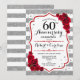 Invitación 60 Aniversario - Rosas Rojas Blanco Plateado