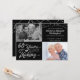 Invite a sus invitados con esta invitación de aniversario de bodas de 60 años en negro y plata con un diseño de tipografía retro que dice 60 AÑOS EN HACERSE, que incluye el año de su boda como parte del diseño. Incluya sus fotos de ENTONCES y AHORA para una divertida invitación para recibir. Los detalles de la invitación a la fiesta están en el reverso. CONSEJO DE FOTO: Elija fotos con el sujeto en el medio y/o pre-recorte en formas similares ANTES de subir y/o use la herramienta de RECORTE para ajustar la imagen dentro del área del template. ASISTENCIA: Para obtener ayuda con la modificación del diseño o personalización, cambio de color, cambio de tamaño o transferencia del diseño a otro producto, comuníquese con el diseñador ANTES DE PEDIR a través de la pestaña de MENSAJE de Chat de Zazzle a continuación o env