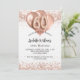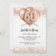 Por un elegante cumpleaños número 60. Un elegante fondo blanco. Decorado con oro rosa, purpurina falso rosa, chispas y globos. Personalice y agregue un nombre y detalles del fiesta. El nombre está escrito con un guión de estilo con letras a mano, número 60 con fuentes de estilo globo.