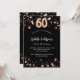 Un fondo negro clásico, decorado con estrellas doradas subió. Personalice y agregue un nombre y detalles del fiesta. El número se escribe con un guión de estilo globo.