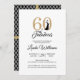 Una moda, elegante, invitación para fotos de 60 años que puedes personalizar y enviar para tu fiesta de 60 años. Las palabras "60 and Fabasty" en purpurina negro y dorado se utilizan en la tipografía moderna. Hay un patrón geométrico en blanco y negro en la parte posterior de la tarjeta con cintas purpurinas de oro. Si necesita ayuda o productos a juego, por favor contáctenos a través de nuestra tienda.