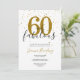 Esta elegante invitación de cumpleaños con estrellas doradas y confeti con el texto '60 y fabuloso' en letra cursiva puede ser personalizada con los detalles de tu fiesta de cumpleaños en texto moderno. El reverso tiene estrellas doradas y confeti en un fondo dorado complementario. Diseñado por Thisisnotme©