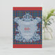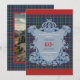 The front of the invitation features an elaborate, heritage-inspired family crest set against a striking tartan plaid background in rich blue, cherry red, sunny yellow, and vibrant turquoise stripes. Personalize the crest with the honoree’s name, date, and a custom message for a one-of-a-kind invitation that reflects your family’s unique story.