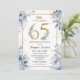 Invitación 65th Birthday Party Elegant Dusty Blue Floral