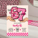 Invitación 6 7 Meme Varsity Leopard Checkerboard Girl's Party