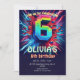 Invitación 6th Birthday Boy Pixel neon Invitation
