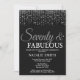 Invitación al cumpleaños 70. Setenta y fabuloso. Negro y plata. Brillantina plateada. Fiesta de cumpleaños para adultos. Para hombres o mujeres. Para una mayor personalización, haga clic en el botón "Personalizar" y utilice nuestra herramienta de diseño para modificar esta plantilla.