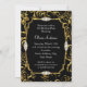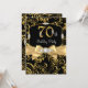 Invitación a la fiesta de cumpleaños número 70. Elegante arco de diamante dorado negro y diseño de damasco floral. Por favor, tenga en cuenta: ¡Todas las imágenes planas! ¡No tienen joyas de verdad!