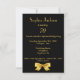Elegante, clásico, glamuroso y femenino. Una cinta dorada y un arco. Fondo negro. Con el texto: 70th Birthday! en el frente Añadir los detalles del evento en el reverso.