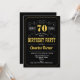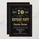70.ª Invitación a la fiesta de cumpleaños. Elegante diseño retro negro, dorado y blanco con diseño de pizarra y fuente de guión. ¡Salud a 70 años! Mándame un mensaje si necesitas más personalización.