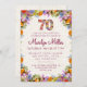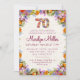 Invite a los amigos y a la familia en un estilo con esta elegante invitación floral. Una vibrante mezcla de flores de acuarela enmarca tus detalles personalizados, lo que hace una hermosa manera de anunciar una celebración de cumpleaños número 70. Perfecto para reuniones de primavera o verano y personalizable completo. ¡Disfrútalo!