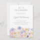 Una elegante acuarela floral de flores de época decora el borde inferior de esta invitación a la fiesta de 70 años. Las flores pastel son suaves y están decoradas con obras de arte moderno.