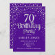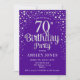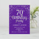 70.ª Invitación a la fiesta de cumpleaños. Elegante diseño en púrpura real y purpurina de plata falsa. Presenta un diseño elegante de tipo de letra y letra de guión. Mándame un mensaje si necesitas edad personalizado.