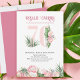 Invitación a la fiesta de cumpleaños número 70, decorada con hojas de palma tropicales, flores de protea rosa y un coco. Un diseño sutil y elegante con acuarelas florales en tonos rosa y verde. Perfecto para la celebración de los 70 años, fiesta de luau o fiesta de té en el jardín.