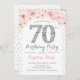 70.ª Invitación a la Fiesta de Cumpleaños para las Mujeres. Elegante diseño floral en rosa rosa, blanco y purpurina fino de plata. Cuenta con rosas rosas rosadas y fuentes de diamante. Perfecto para una elegante celebración de cumpleaños para adultos
