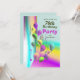 Globos multicolores y un colorido fondo en una invitación a la fiesta de cumpleaños número 70.