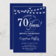 Invitación a los 70 Años Simple diseño azul marino con luces de cadena de hadas y tipo de letra de guión. ¡Salud a 70 años! ¡Se puede personalizar en cualquier edad! Mándame un mensaje si necesitas más personalización.