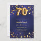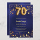 Invitación 70.º cumpleaños estrellas de oro azul marino