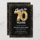 ¡Eleva tu celebración de hitos con nuestras elegantes invitaciones para la fiesta de cumpleaños número 70! Con un versátil fondo negro, un brillante purpurina dorado, setenta encantadores globos de helio dorado y un moderno texto de cumpleaños de 70 años que es una brisa para personalizar! Añada su toque único a este día especial y permita a sus huéspedes anticipar un evento memorable.