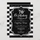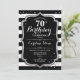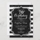 70.ª Invitación de cumpleaños. Elegante diseño negro con una falsa plata. Las rayas blancas y negras con diamantes de purpurina se confetti. Perfecto para una elegante fiesta de cumpleaños.